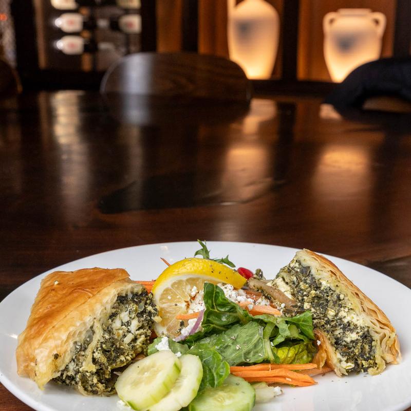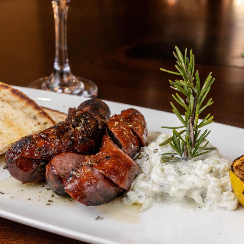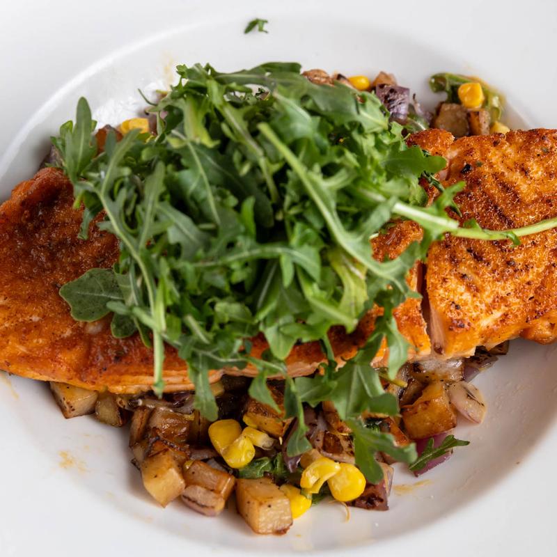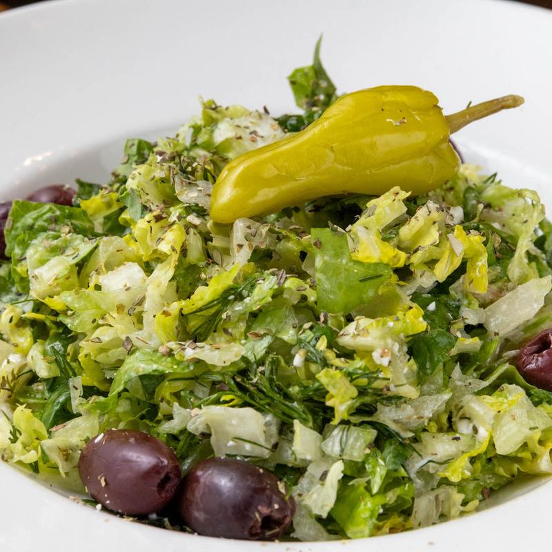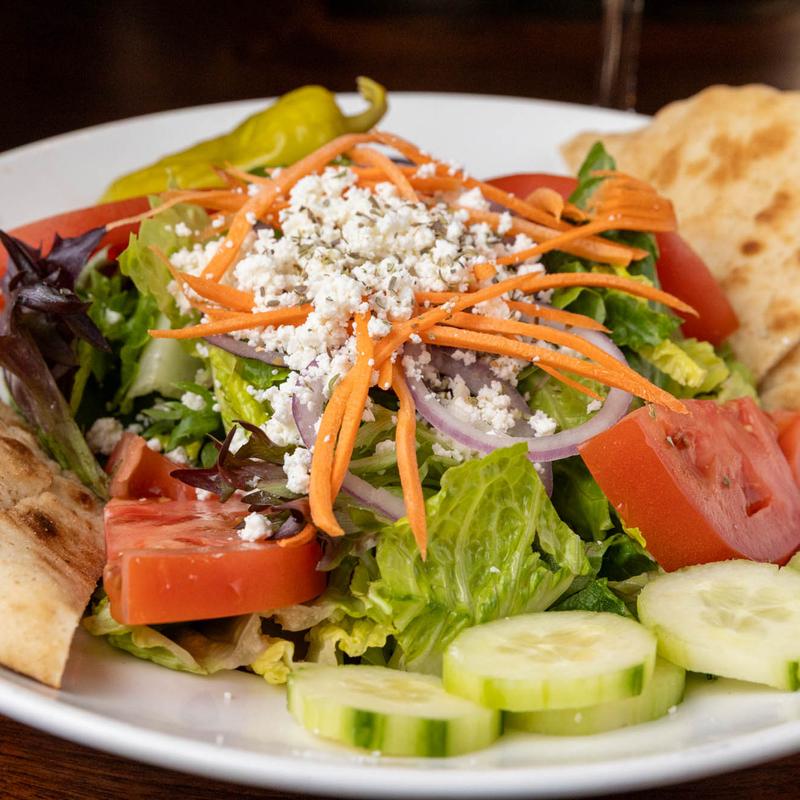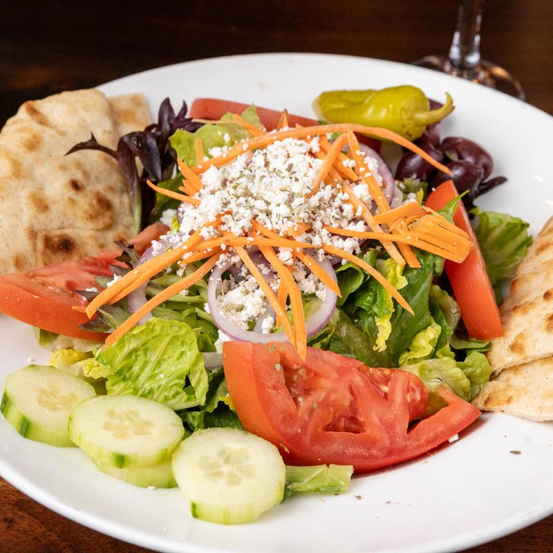 Salad Protein Choices: Chicken +$8.00 | Gyro +$8.00 | Steak +$13.00 | Shrimp +$13.00 | Salmon +$13.00 • Your choice of our house made dressings: Balsamic, Oil and Vinegar, Peppercorn Ranch, Gorgonzola, Apple Cider Vinaigrette, Champagne Vinaigrette, or Greek Dressing.